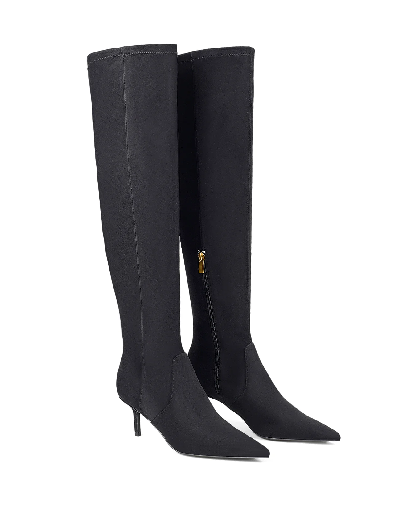 The Yonas over-the-knee boot is the ultimate statement in chic sophistication. Crafted from soft stretch microsuede, this streamlined design hugs the leg for a flattering, second-skin fit. Featuring a pointed toe and a slim kitten heel, it offers effortless elegance with a touch of edge. A side zip ensures easy wear, making it the perfect choice for styling with mini hemlines or layered over skinny denim for a chic, elongated look.